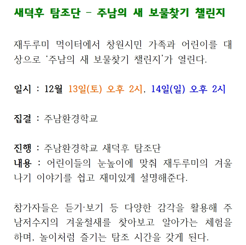 12/13(토) 새덕후 - 주남의 새 보물찾기 챌린지
